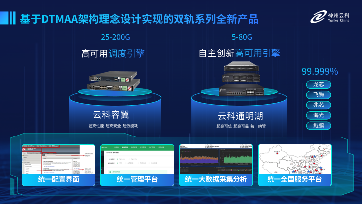 为了更好的适配双轨超高可用架构,yth2206游艇会yth研发了容翼系列和云科通明湖信创系列两大应用交付控制器产品。